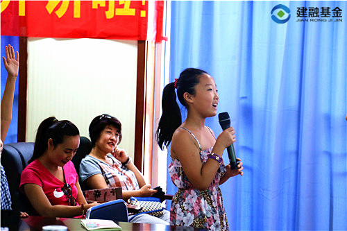 2014年7月19日,首期建融基金“少兒財(cái)商”公益講堂活動(dòng)圓滿舉行,建融基金高級(jí)講師杜靜發(fā)表《我是小小理財(cái)家》主題演講,現(xiàn)場(chǎng)氣氛活躍,反響熱烈。
